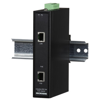 Das Gerät unterstützt 10/100/1000MBit/s Datenübertragung und wird über Hutschiene mit 24-48 Volt versorgt. PoE-konforme Switches, WLAN-Lösungen oder IP-Kameras versorgt der Industrie-PoE-Injektor einfach über das Datenkabel mit Spannung. Dabei werden Geräte mit einer maximalen Leistungsaufnahme von bis zu 30 Watt unterstützt.
