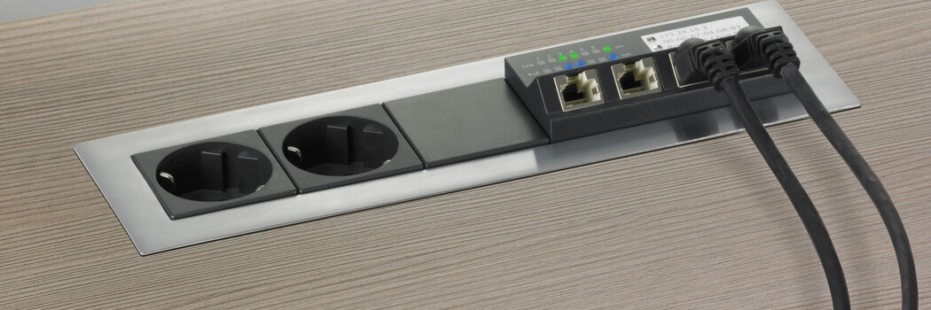 Dzięki nowej obudowie wlotu meblowego wysokowydajne mikroprzełączniki firmy MICROSENS mogą być stylowo zintegrowane z różnymi elementami mebli. Oszczędzające miejsce rozwiązanie z dyskretną ramą ze stali nierdzewnej pozwala na atrakcyjne umieszczenie mikroprzełączników blisko użytkownika, na przykład w biurku, w stole konferencyjnym, w mównicy lub ladzie.